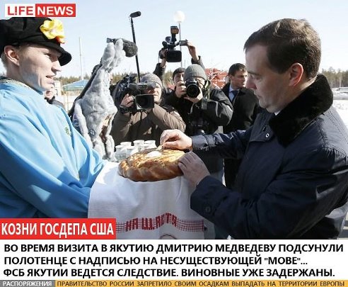 2. Как-то странновато, что с хлебом-солью Медведева встречает не девушка, а парень.